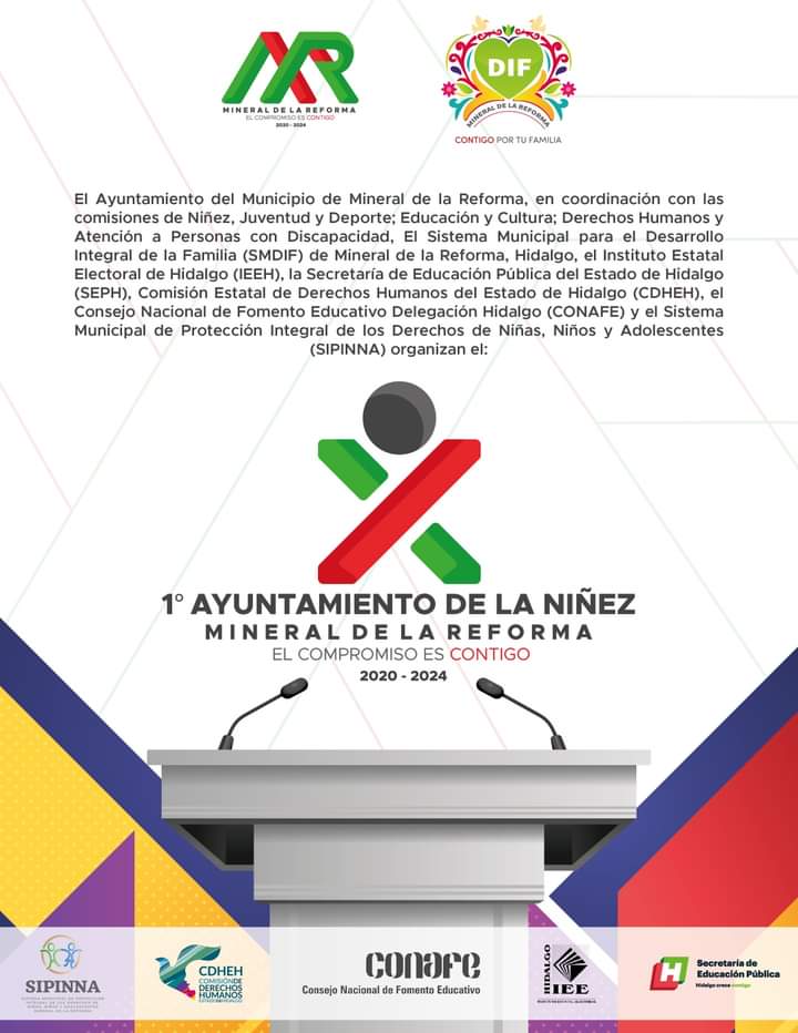 Esta mañana, el Ayuntamiento de Mineral de la Reforma, inicio la convocatoria para instalar el “Primer Ayuntamiento de la Niñez”, con el fin de dar voz a los más pequeños y darles participación en un ejercicio democrático , transparente, voluntario, incluyente, respetuoso e informado, donde puedan expresar sus sentimientos y propuestas en temas de predilección.
