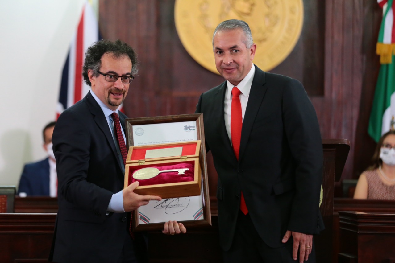 En Pachuca, visitó la Casa Rule, donde durante la tercera sesión solemne pública del Ayuntamiento de Pachuca, el alcalde Sergio Baños le entregó las llaves de la ciudad y un reconocimiento como huésped distinguido.