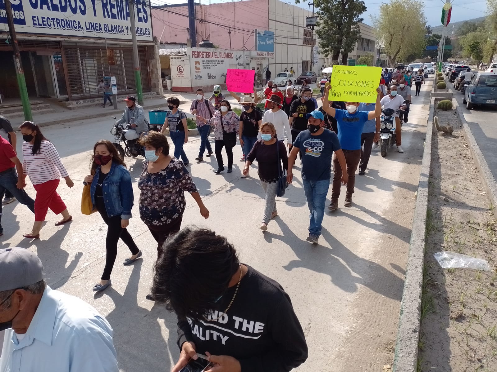 Vecinos y comerciantes del centro de Tula, afectados por el desbordamiento del río Tula hace 21 días, tomaron las calles para manifestar su exigencia de que los gobiernos les atiendan, les den soluciones al problema de las inundaciones, que señalan, les han quitado la tranquilidad y que la Comisión Nacional del Agua les indemnice.