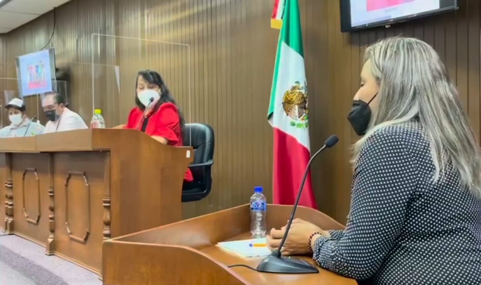 La regidora Dolores Mayra de la Vega Sánchez le preguntó a la funcionaria sobre la situación de la construcción de la escuela, que fue suspendida en febrero y luego clausurada en mayo pasado, porque hay indicios de que se ha continuado con su construcción.
