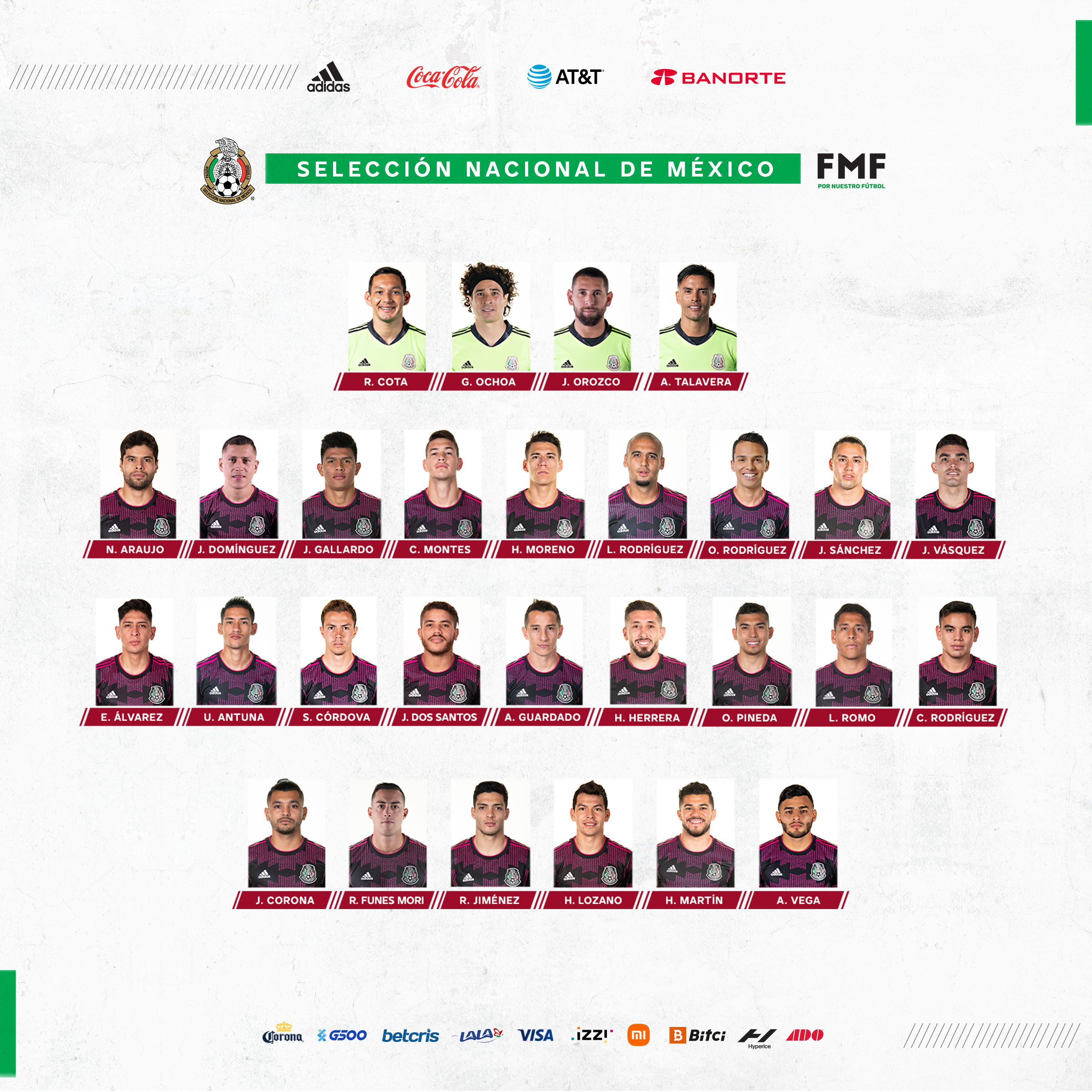 - Porteros: Guillermo Ochoa, Alfredo Talavera, Rodolfo Cota, Jonathan Orozco.