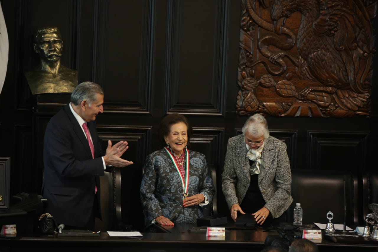 El Senado de la República entregó este jueves la medalla Belisario Domínguez 2021 a Ifigenia Martínez. En la antigua Casona de Xicoténcatl, los senadores reconocieron a la legisladora, así como en la modalidad post mortem al doctor Manuel Velasco Suárez.