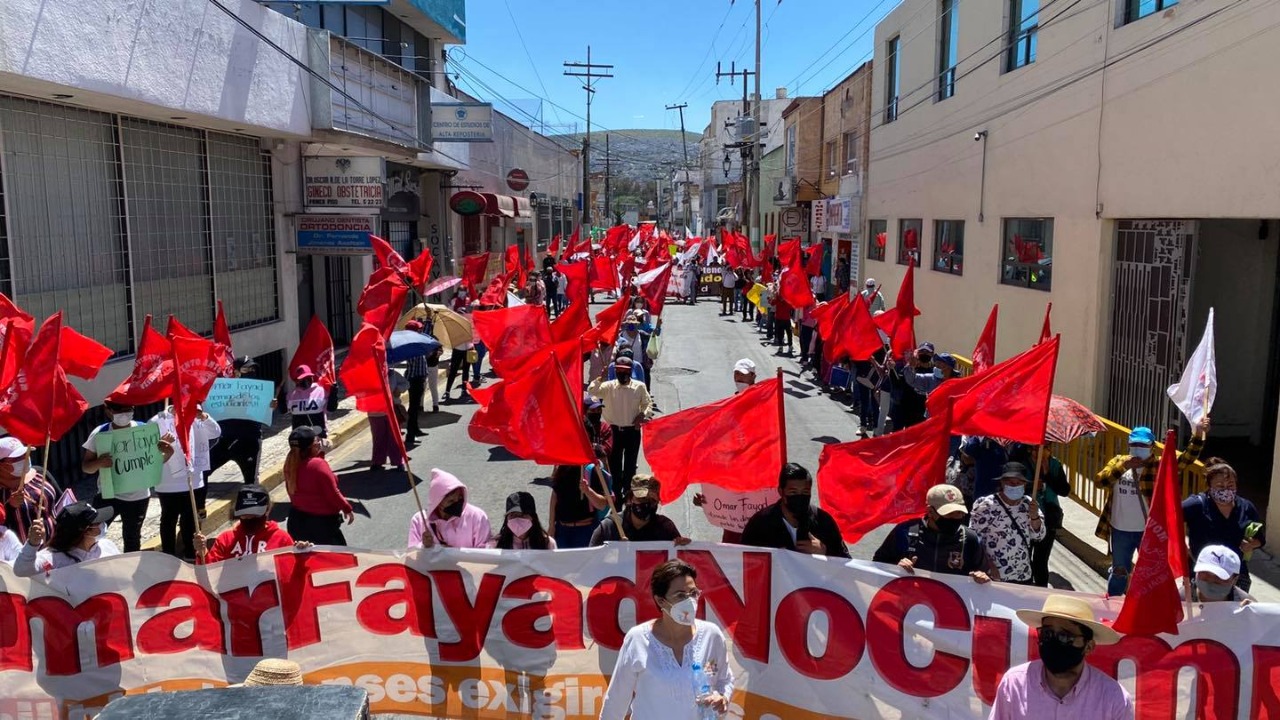 Esta tarde, el Movimiento Antorchista de Hidalgo se manifestó frente a las instalaciones del Palacio de Gobierno para exigir, una vez más, al gobernador Omar Fayad que libere el pago de subsidio para los albergues estudiantiles y se resuelvan las necesidades de los grupos vulnerables pertenecientes a este movimiento, ya que desde hace años y tras exigir una audiencia, aún no se le brinda una solución.