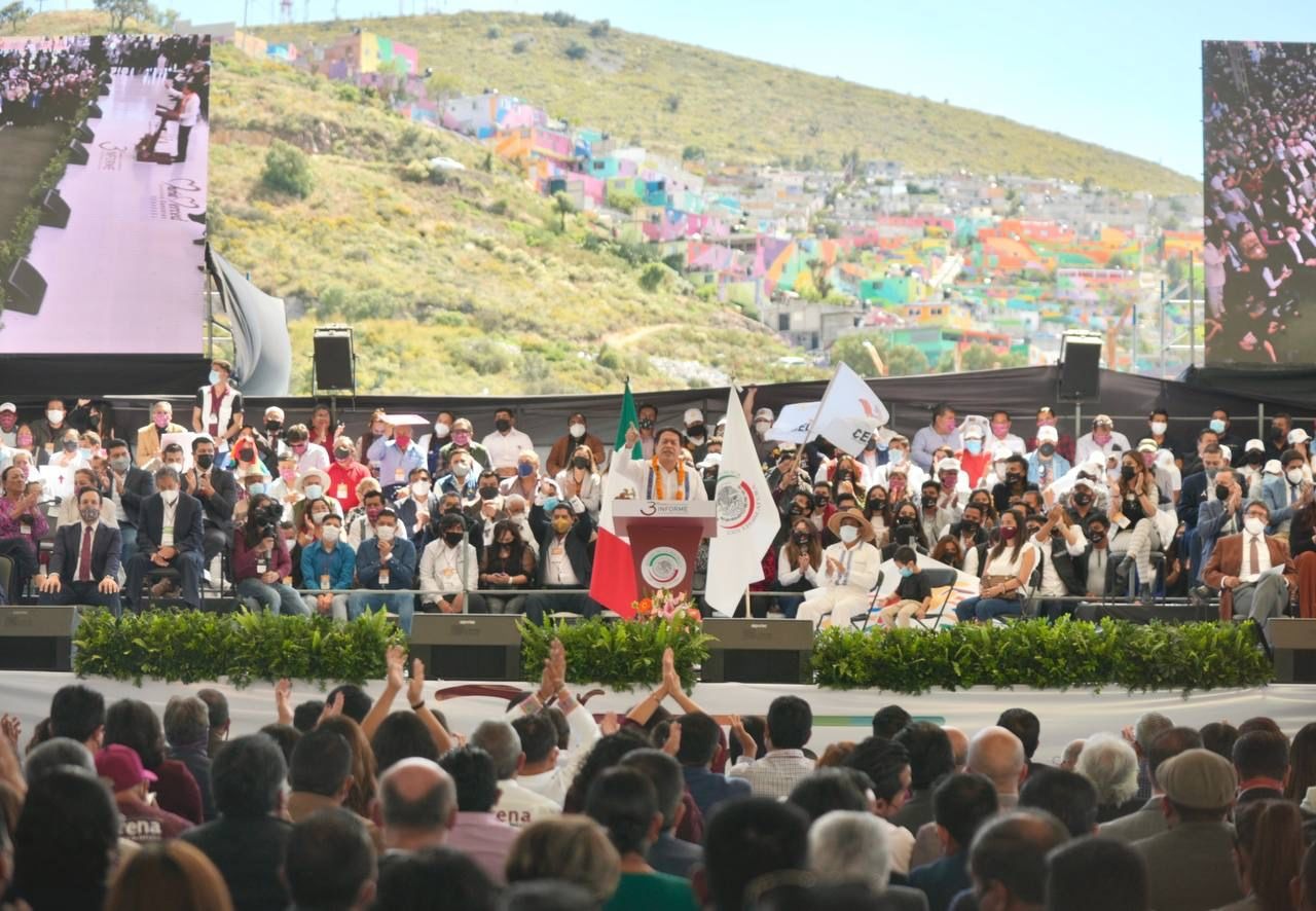 Durante su mensaje en el tercer informe de actividades legislativas del senador Julio Menchaca Salazar, quien también aspira a abanderar a Morena en la elección a gobernador, Mario Delgado aseguró que en 2022 la Transformación llegará a Hidalgo de la mano de un gobierno de izquierda que sea de la gente, que trabaje con austeridad, honestidad y sin corrupción.