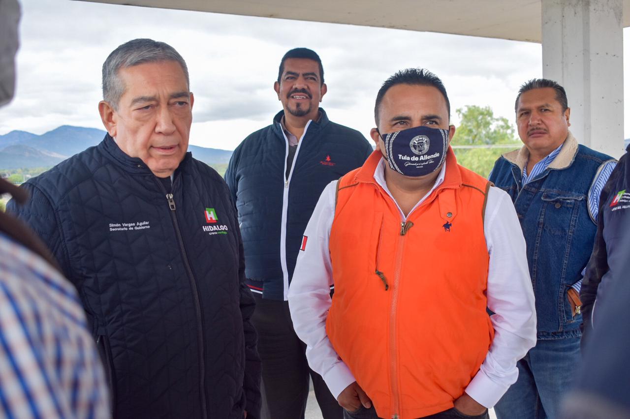 El presidente municipal de Tula, Manuel Hernández Badillo, mostró a personal de la Marina Armada de México y la Comisión Nacional del Agua (CONAGUA), los sitios de mayor riesgo de desbordamiento en el río Tula y la presa Endhó.