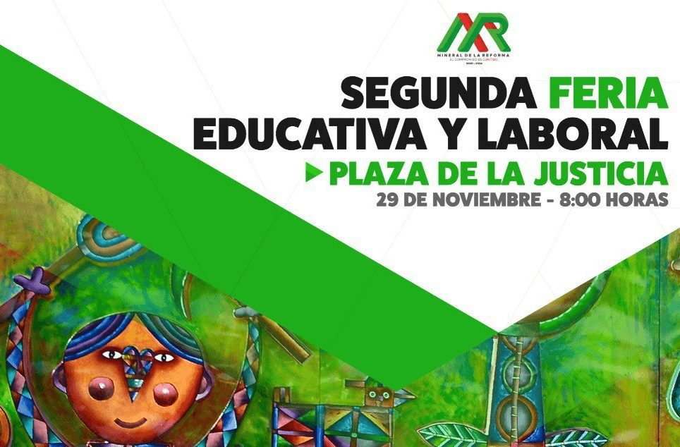 La Secretaría de Desarrollo Humano y Social Municipal de Mineral de la Reforma, convoca al público interesado a participar en la “Segunda Feria Educativa y Laboral 2021” que se efectuará el próximo 29 de noviembre a partir de las 8:00 de la mañana en la Plaza de la Justicia ubicada en Pachuquilla.