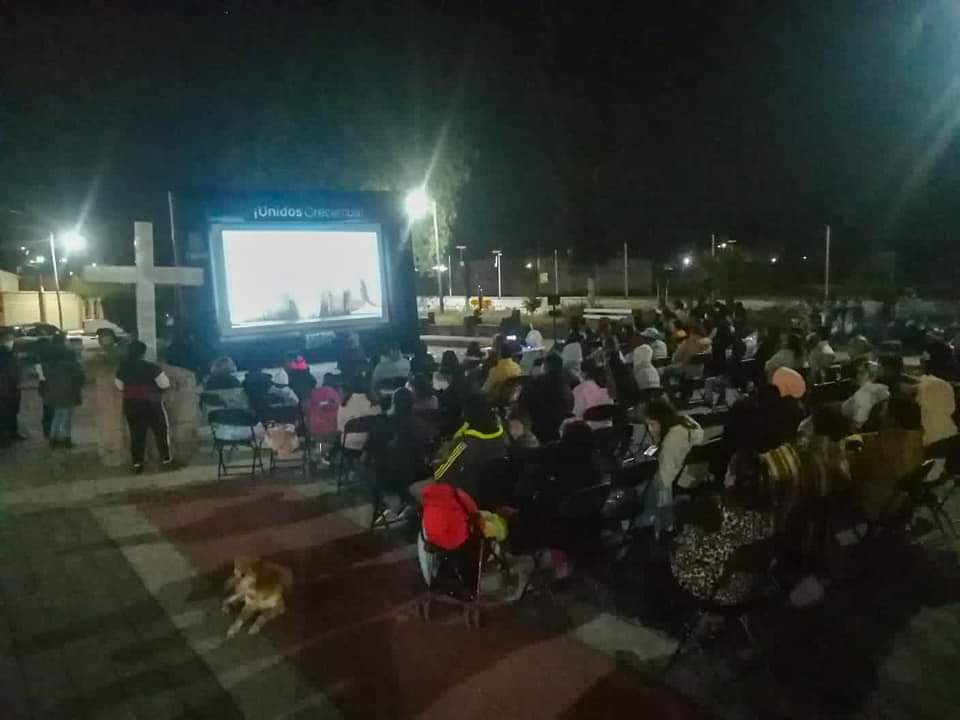 “Esto mediante una pantalla gigante, que recorrerá todas las colonias y comunidades del municipio. Durante estas semanas se han realizado funciones en las colonias Tlaxinacalpan, Tianguistengo y San Mateo 1era sección alcanzando a más de 340 personas”, refirió.