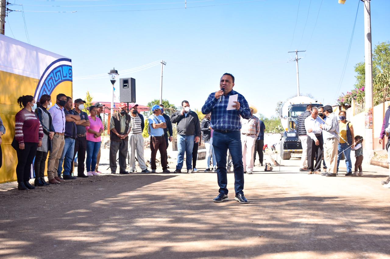 La obra de pavimentación hidráulica de la calle El Mezquite tiene un alcance de mil 123 metros cuadrados y en ella se hará una inversión de casi un millón de pesos provenientes del Fondo de Aportaciones para la Infraestructura Social Municipal (FAISM).