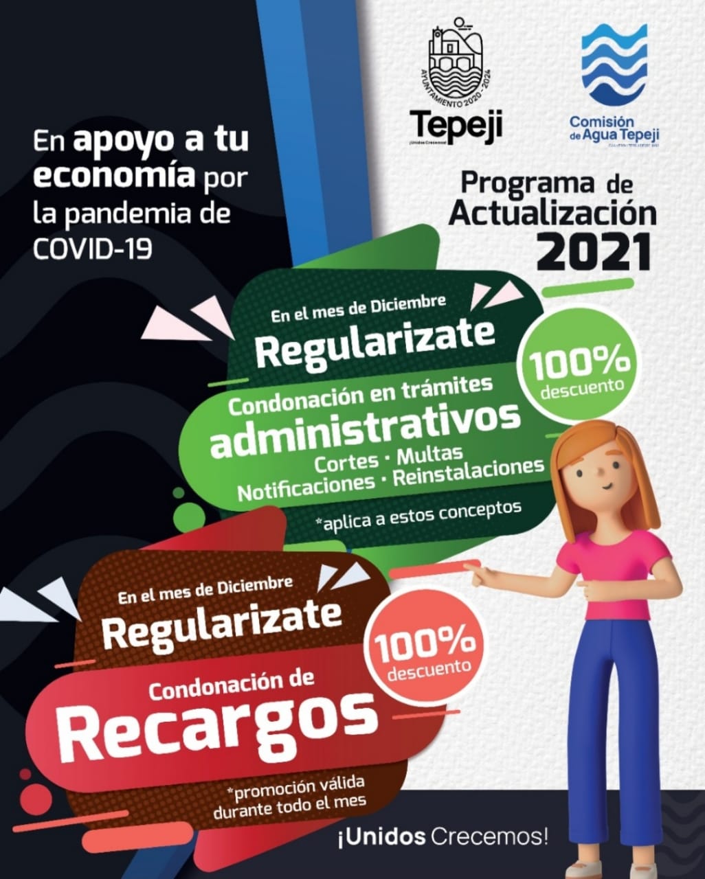 La presidencia municipal de Tepeji del Río ha informado que en apoyo a la economía familiar por la pandemia del COVID-19, se están condonando los trámites administrativos por cortes, multas, notificaciones y reconexiones