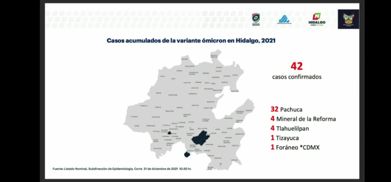 Suman ya 42 casos positivos y dos fallecimientos por la variante Ómicron, informó el secretario de Salud de Hidalgo, Alejandro Benítez Herrera.