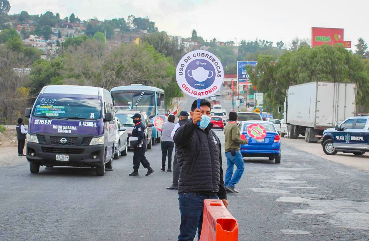 El Gobierno Municipal de Tepeji implementó a partir de hoy filtros sanitarios carreteros en los accesos al municipio para informar a los automovilistas que en Tepeji del Río es obligatorio el uso del cubrebocas.