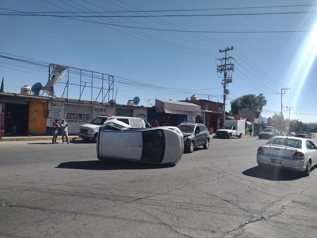 Dos vehículos chocaron la tarde de ayer en El Crucero de la antigua carretera México-Querétaro y la carretera Tula-Tepeji, provocando la volcadura de uno de estos.