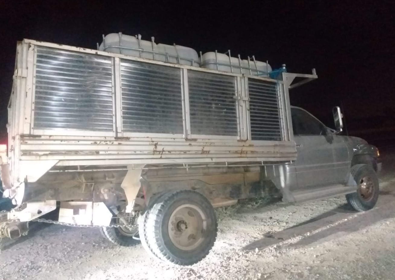 El conductor de la camioneta, una Dodge, Ram 3500 blanca, con placas de circulación del Estado de México, detuvo la marcha, pero descendió rápidamente y corrió para evitar ser detenido, dejando abandonado el automotor aún en marcha.