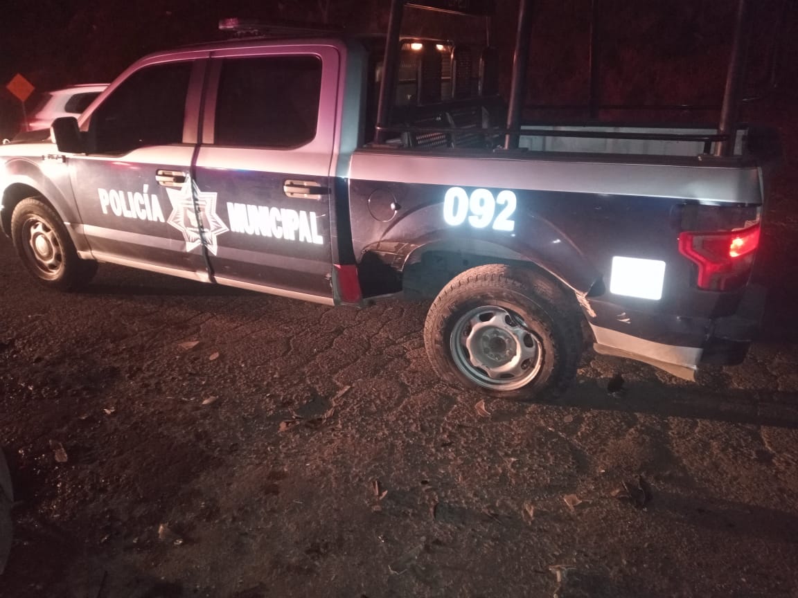Las elementos de Seguridad Pública Municipal que se encontraban en la unidad siniestrada fueron trasladados al Hospital Regional al presentar posible fractura de rótula y diversos golpes. Los tripulantes del vehículo particular resultaron policontundidos.