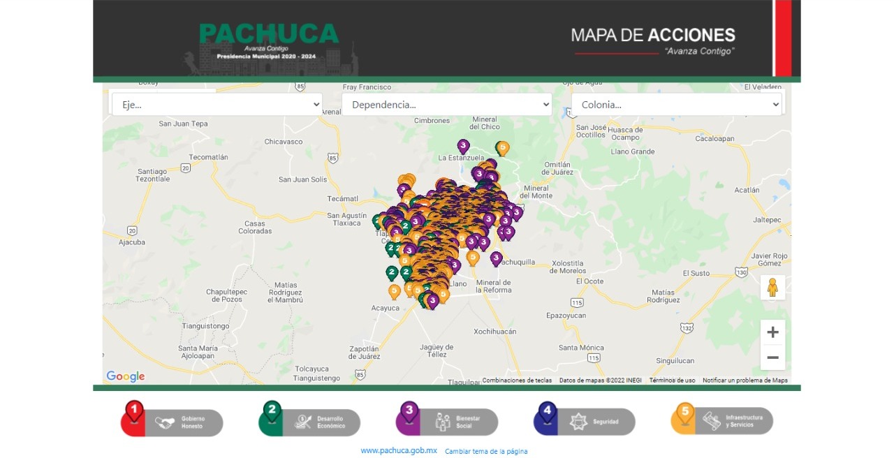 “La plataforma facilita que los ciudadanos interactúen y que puedan consultar específicamente cada acción realizada, por cada uno de los ejes del plan municipal de desarrollo, dependencia y colonia de la demarcación, sin necesidad de un registro. Y estos datos los tendrán siempre que quieran revisarlos en el portal accionesmunicipales.pachuca.gob.mx”, expresó el edil.