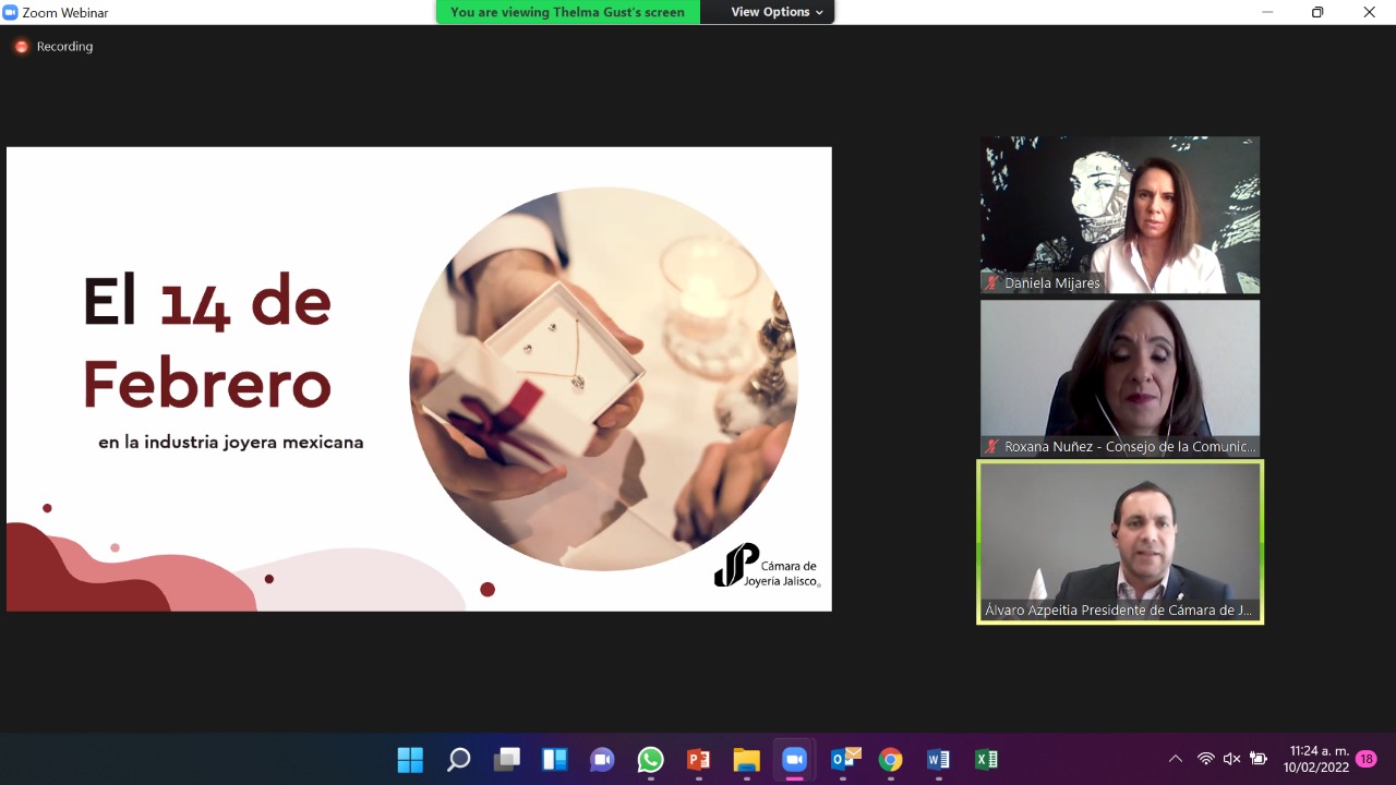 El Consejo de la Comunicación llevó a cabo el panel “El día del amor y la amistad en números”, con la participación de Alicia Páramo, Directora General de la Asociación Nacional de Fabricantes de Chocolates (ASCHOCO); Daniela Mijares, Presidenta Ejecutiva de la Cámara Nacional de Restaurantes y Alimentos Condimentados; y, Álvaro Azpeitia, Presidente de la Cámara Regional de la Industria de Joyería y Platería de Jalisco, para hablar sobre la importancia de esta celebración para la economía mexicana.
