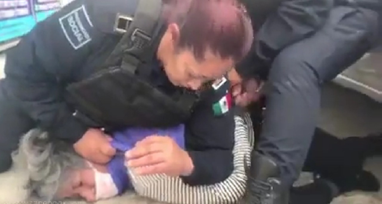 De igual manera, aunque se presume que el titular de la dependencia pidió que no fuera lastimada, la víctima, de aproximadamente 45 años, fue agredida contra el suelo mientras varios policías la sometían con rudeza.