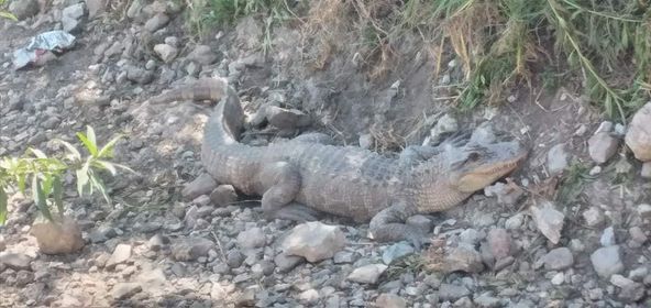Tremendo susto y sorpresa se llevaron vecinos de la comunidad de El Rosario, en el municipio de Francisco I. Madero, al descubrir la presencia de un cocodrilo que llegó hasta ese lugar, al parecer nadando dentro de una zanja de riego.