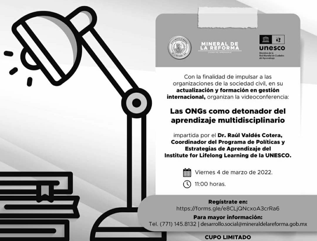 Asimismo, el Ayuntamiento de Mineral de la Reforma extiende la invitación a las asociaciones civiles interesadas en participar en esta conferencia así como al público en general, el evento se efectuará el viernes 4 de marzo a las 11:00 horas a través de una plataforma digital con cupo limitado y el registro será a través de la siguiente liga https://forms.gle/e8CLjQNcxoA3crRa6