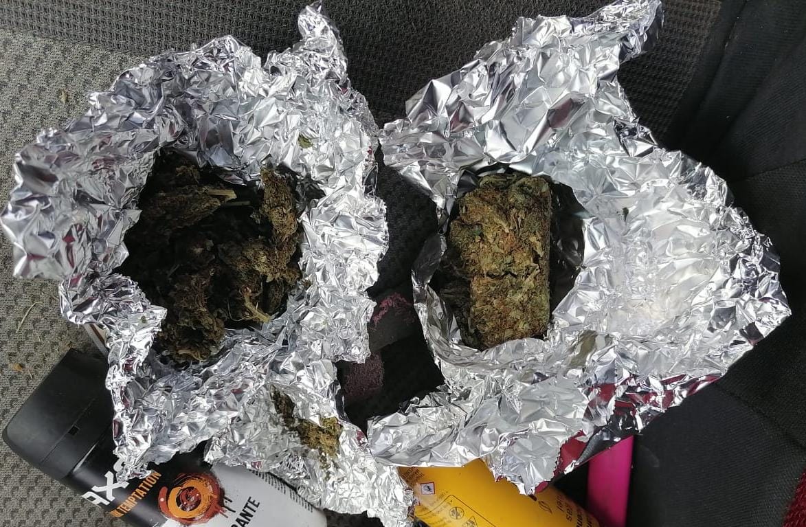 Al realizarle una inspección corporal y del vehículo en el que viajaba, en apego a los protocolos de actuación policial y Derechos Humanos, fueron localizados dos envoltorios con las características propias de la marihuana.