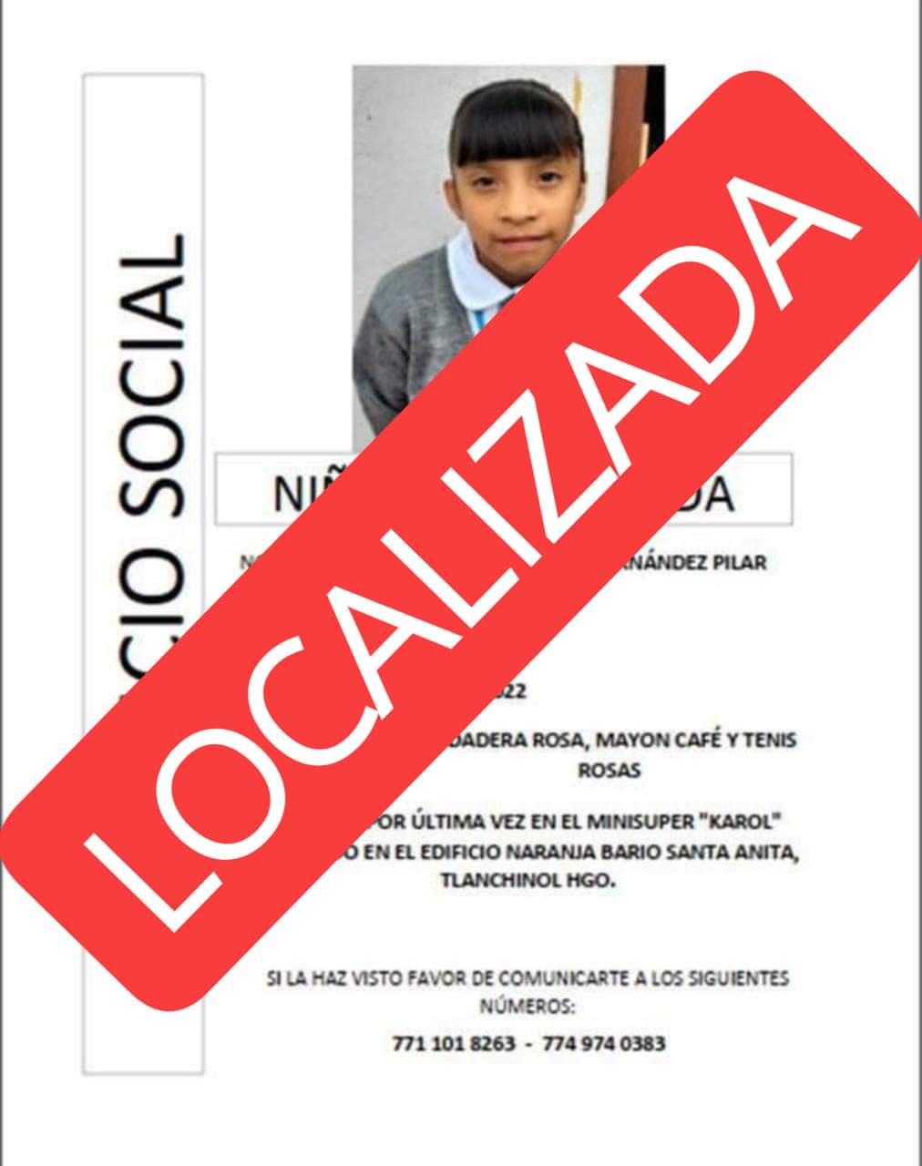 Huejutla, Hidalgo a 10 de marzo del 2022.- Tras una rápida y masiva difusión en redes sociales, se logró localizar a una menor de edad que se reportó como desaparecida en el municipio de Tlanchinol.