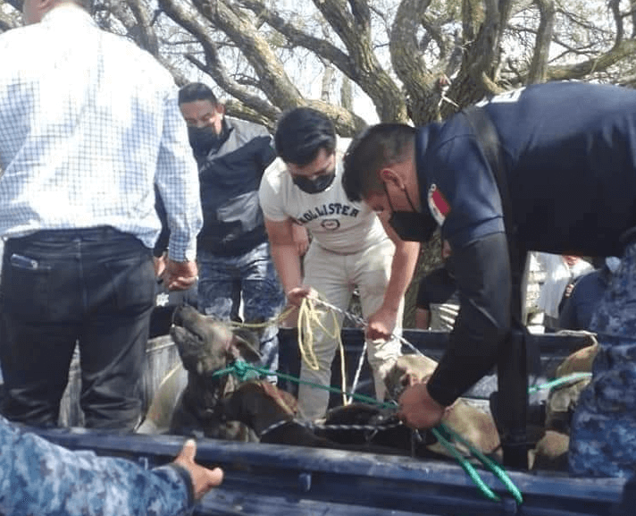 Once perros, algunos de ellos de la raza pitbull, fueron capturados y trasladados al Centro de Control Canino del municipio de Mixquiahuala.