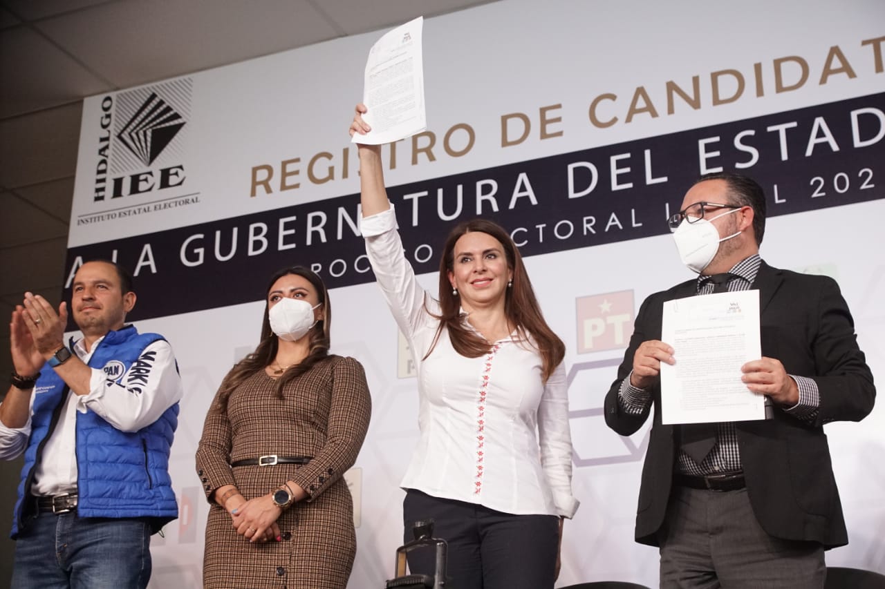 Alma Carolina Viggiano Austria se registró ante el Instituto Estatal Electoral de Hidalgo (IEEH) como candidata de la coalición “Va por Hidalgo”, integrada por los partidos Acción Nacional (PAN), Revolucionario Institucional (PRI) y de la Revolución Democrática (PRD), para contender por la gubernatura en los comicios del próximo 5 de junio.