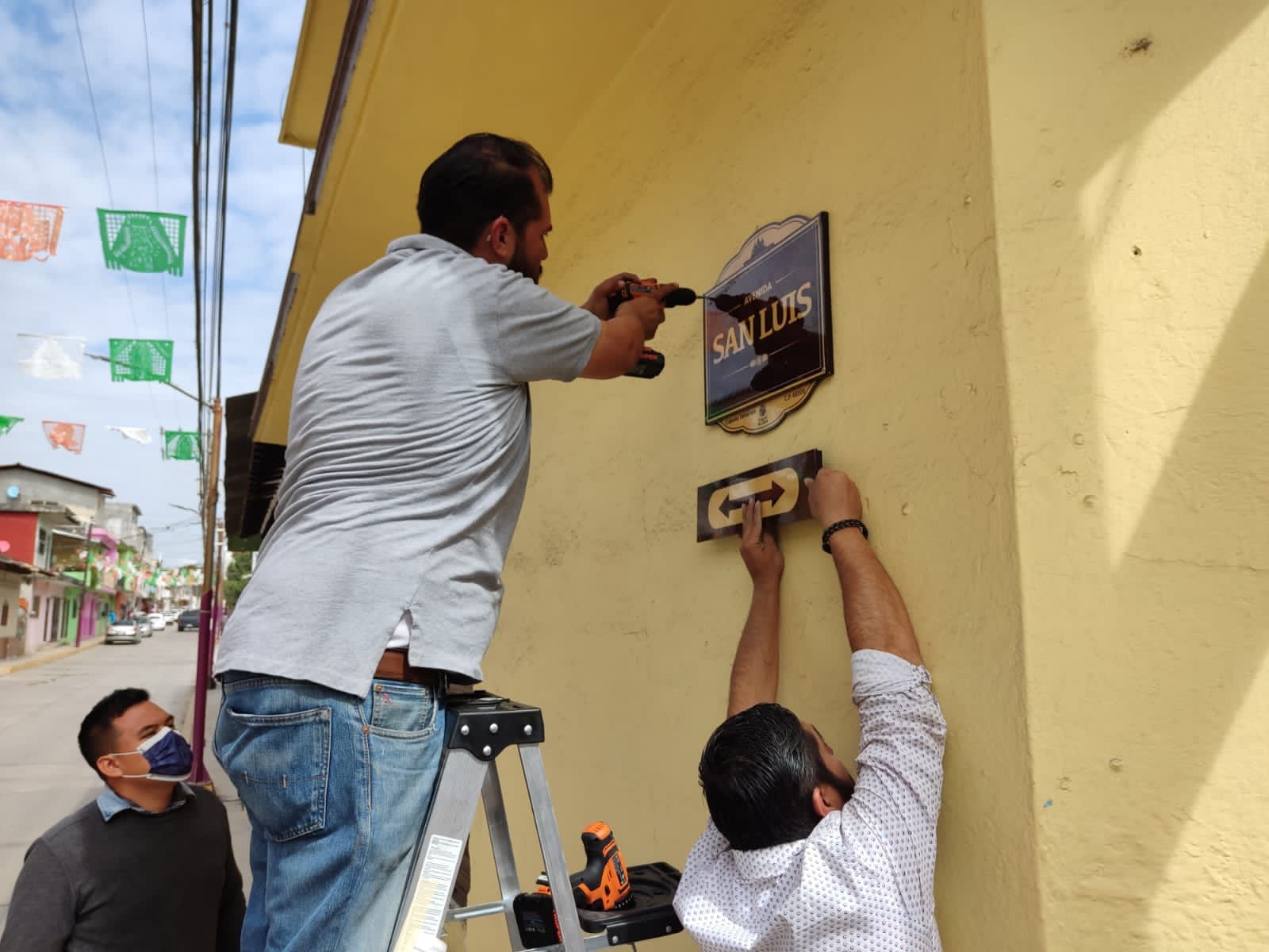 Un total de 92 placas que indican el nombre y sentido de las arterias viales, se colocaron en las calles y avenidas de la ciudad de Huejutla como parte de las actividades que se realizan dentro del programa “Pueblo con Sabor“.