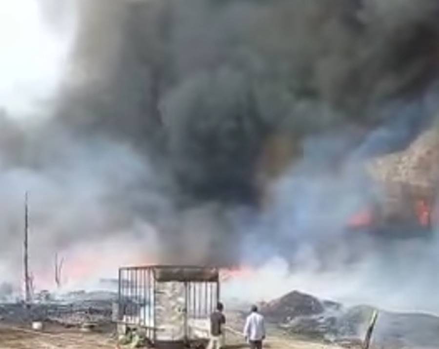 Los primeros reportes indican que el almacén a cielo abierto registró pérdida total y se quemaron varias toneladas de materiales, ya que la conflagración se salió de control porque se propagó muy rápido el fuego.