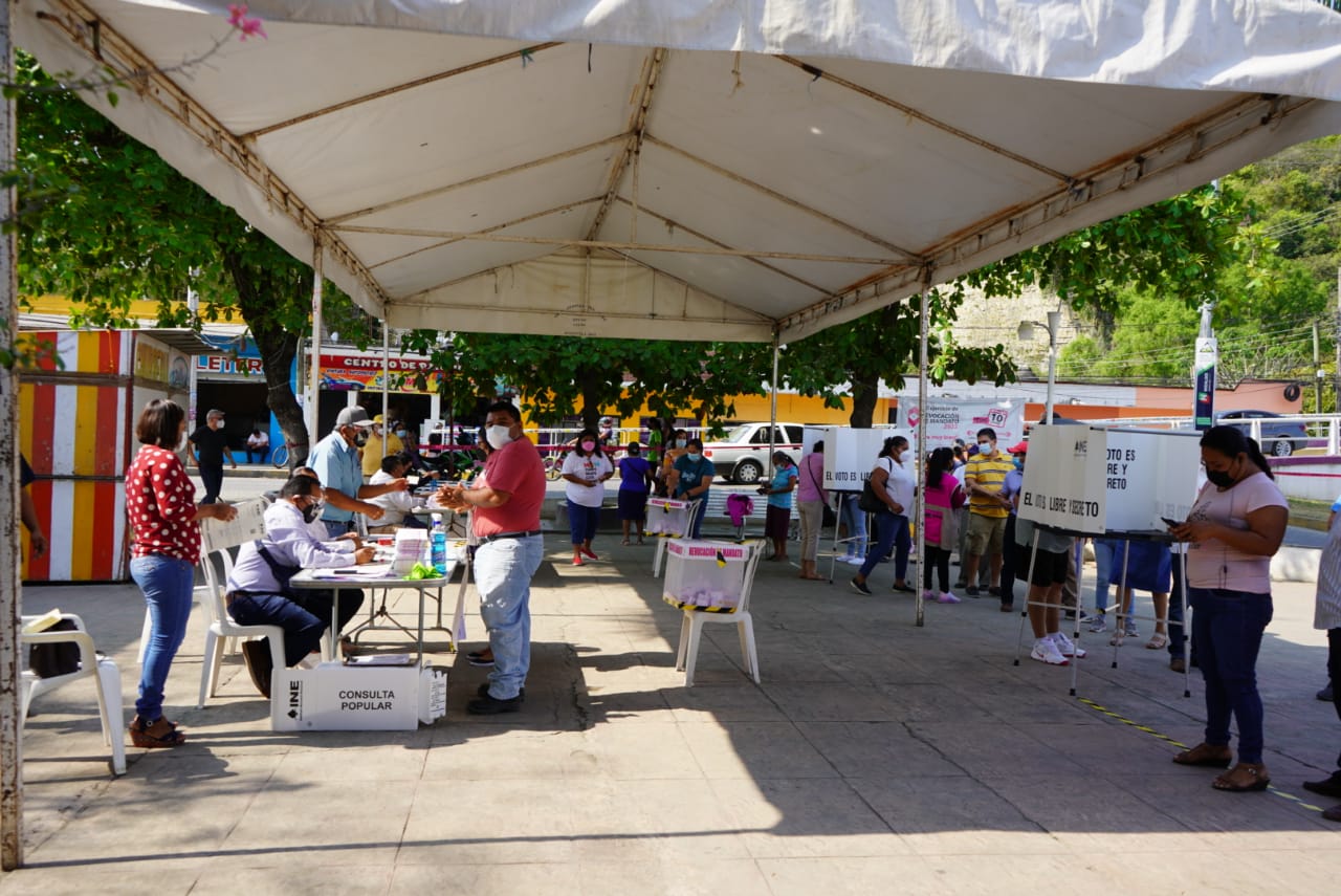Huejutla, Hidalgo a 10 de abril del 2022.- Desde temprana hora se observó movimiento en las casillas que se ubicaron en la Sierra y Huasteca para que las y los ciudadanos tengan la oportunidad de participar en el proceso de Revocación de Mandato.