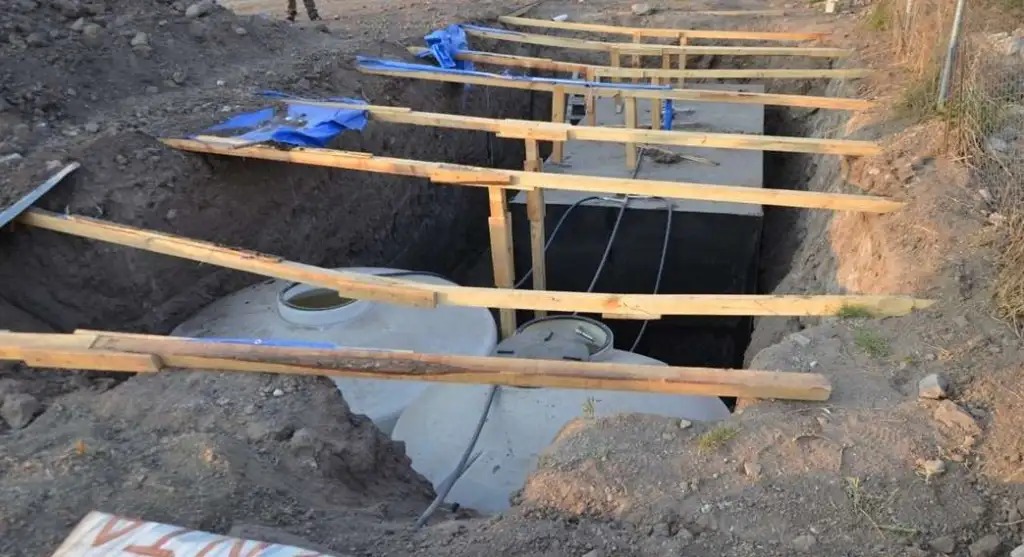 Al inmueble arribaron el Fiscal Federal en compañía de elementos de la FGR y de la Guardia Nacional, donde encontraron una construcción tipo cisterna con dos contenedores de plástico y uno de metal hechizo, los cuales en su interior contenían 36 mil litros de hidrocarburo.