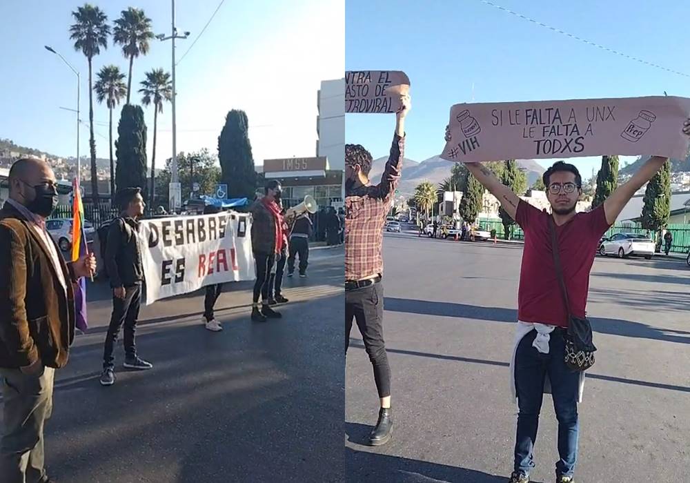 Esta mañana, un grupo pequeño de manifestantes exigió frente a las instalaciones de la unidad Médica No.1 del IMSS, quese solucione el desabasto de medicamentos antirretrovirales para el VIH, ya que, aunque las autoridades aseguran que sí hay, esto no se ha otorgado a quienes lo necesitan.