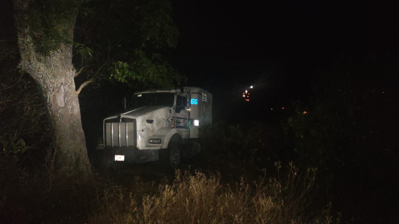 Otro vehículo, un tractocamión marca Kenworth modelo 2012, que transitaba por calles de la comunidad de Xochitlán de las Flores, fue intervenido. Su conductor no pudo acreditar la pertenencia legal del vehículo y fue detenido.