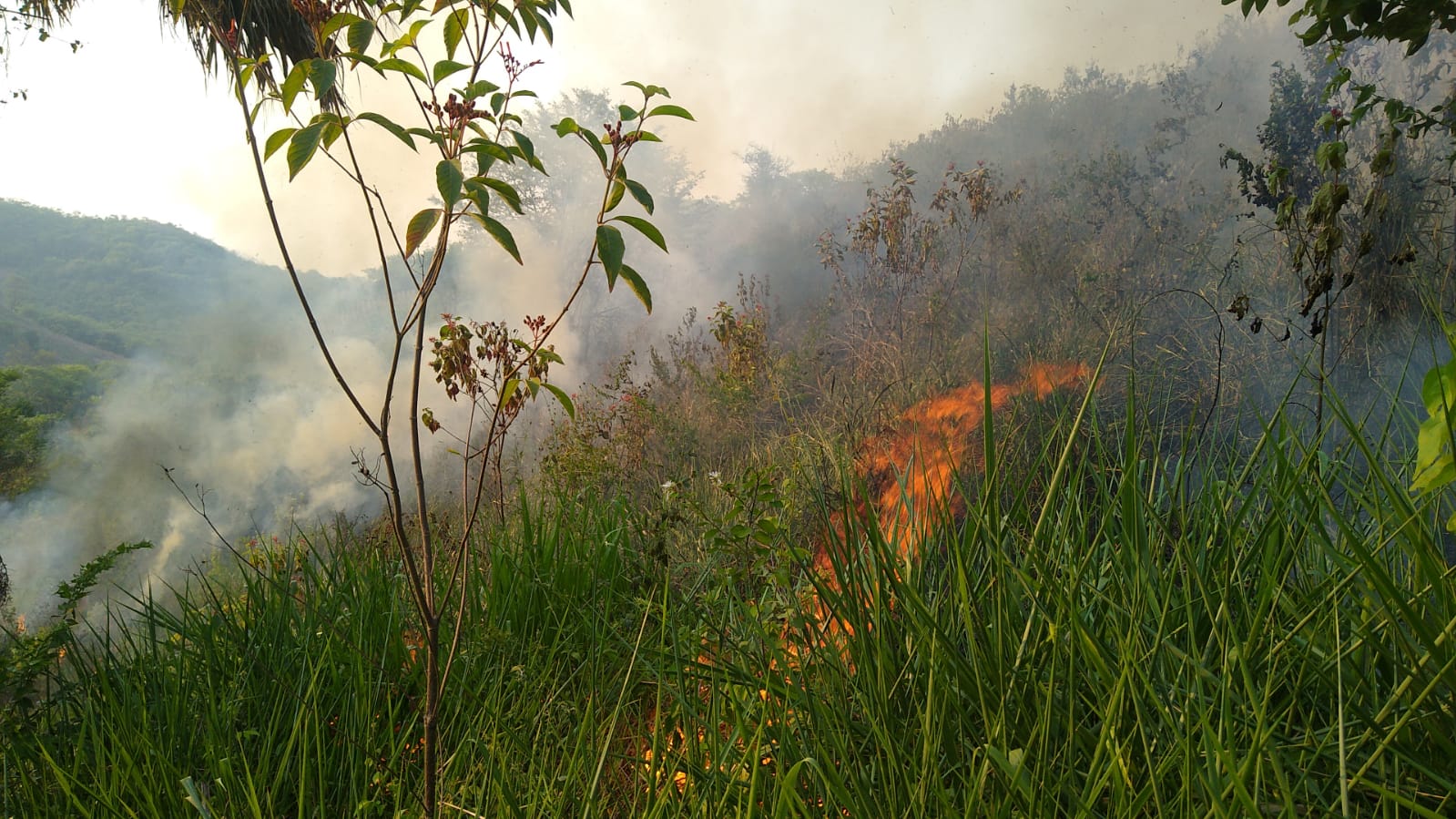 Huejutla, Hidalgo a 20 de mayo del 2022.- Vecinos de la comunidad de Pochotitla del municipio de Huejutla, en colindancia con Jaltocán, piden el apoyo de cuerpos de seguridad para que les auxilien en las labores que permitan apagar un incendio de pastizal.