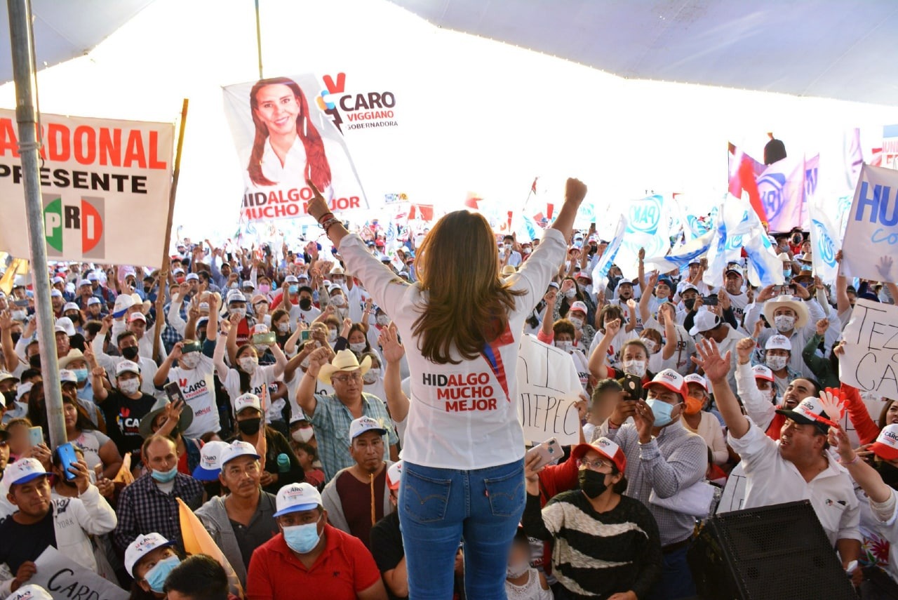 “Vayamos fuertes el 5 de junio, necesitamos ganar de manera contundente para decir que Hidalgo está de pie y luchará por lo que se merece, por los campesinos, mujeres, jóvenes y niños”, señaló Carolina Viggiano, quien se comprometió a trabajar muchas horas para lograr sacar adelante a Hidalgo.
