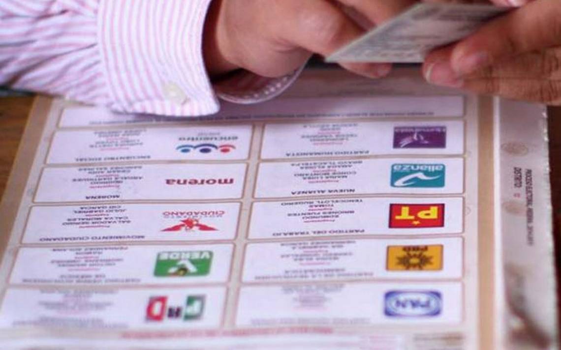 En las hojas se observan varios recuadros con logotipos de partidos políticos, entre los que figura el de Acción Nacional, que está marcado con una equis.