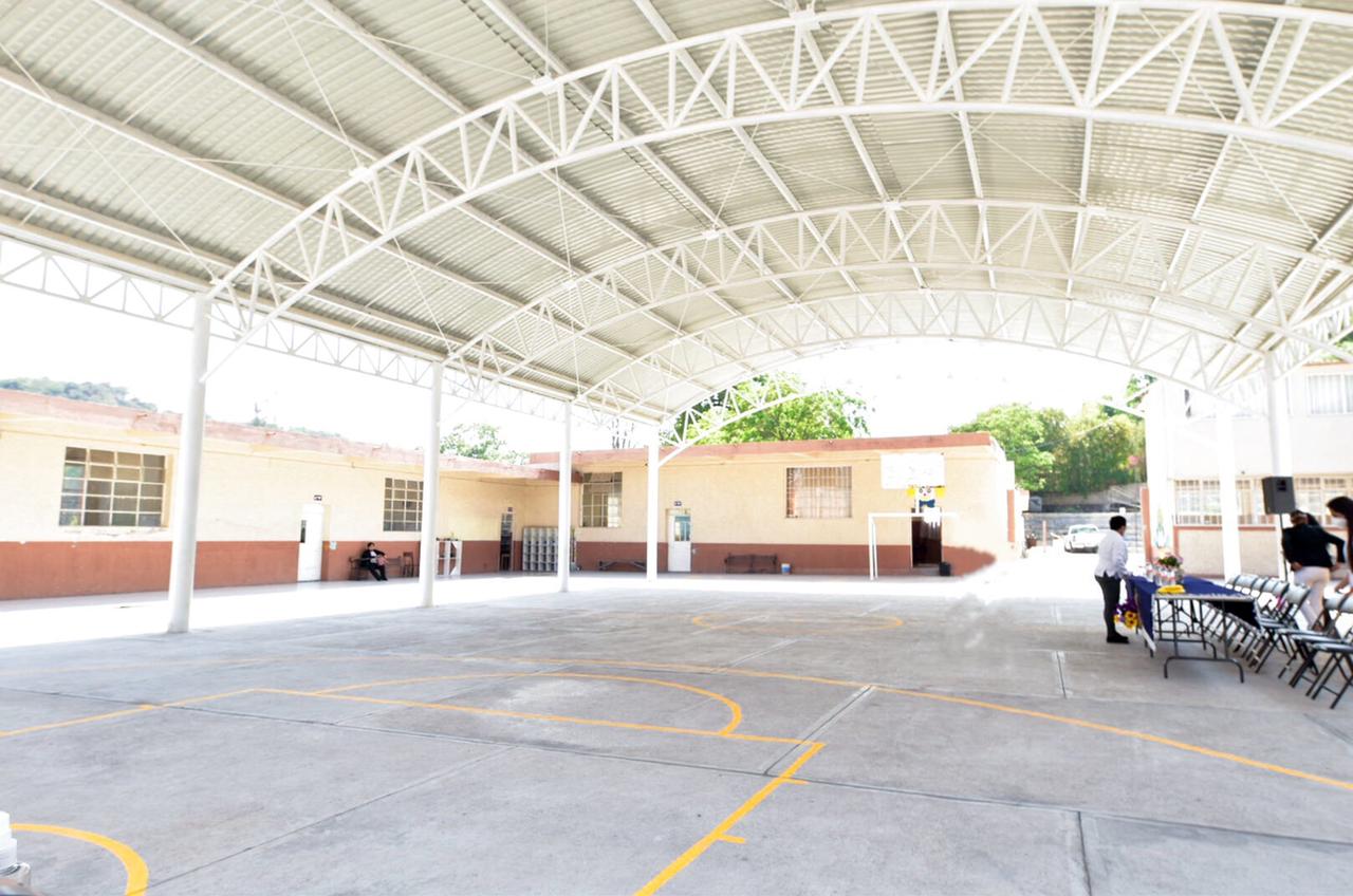 El presidente municipal de Tula de Allende, Manuel Hernández Badillo, hizo entrega a la comunidad escolar de la Escuela Primaria Josefa Ortiz de Domínguez, en la comunidad de San Miguel Vindho, de la techumbre del patio escolar.