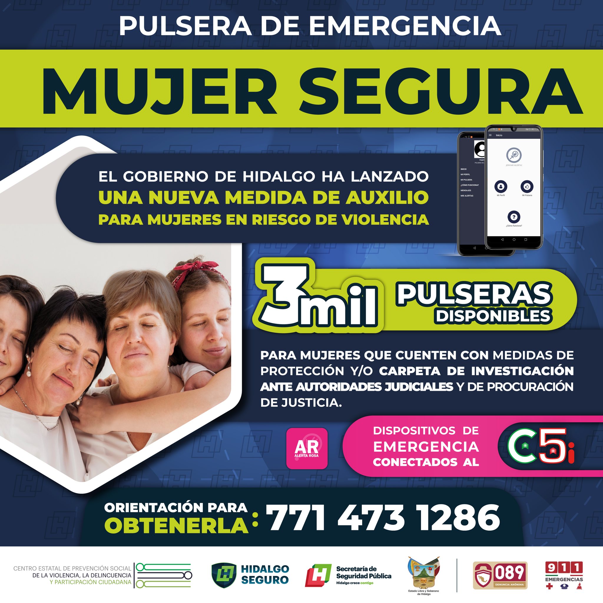 Con el objetivo de auxiliar a mujeres en situación de violencia, la Secretaría de Seguridad Pública de Hidalgo (SSPH) puso en marcha la estrategia ‘Mujer Segura’, mediante la cual entregará pulseras de emergencia con botón de pánico.