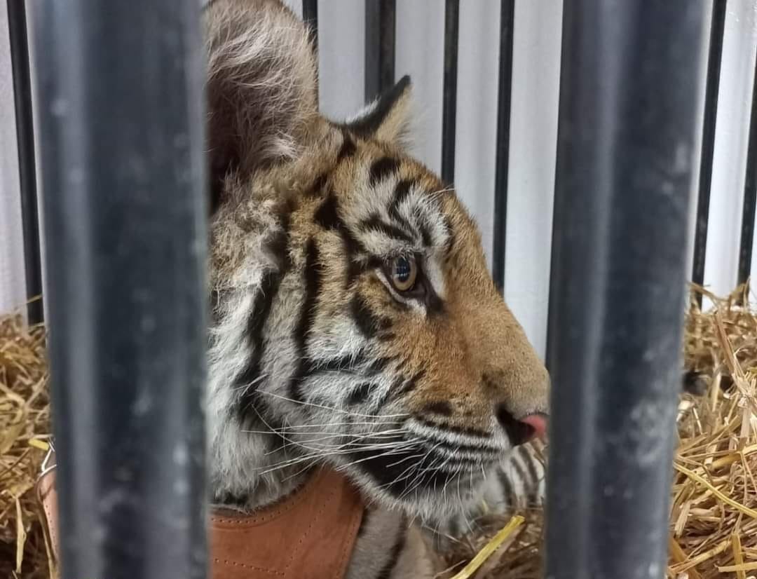 Las autoridades municipales informaron que el cachorro de tigre de bengala, quien tiene una edad aproximada de 5 meses, fue valorado en el sitio por un médico veterinario y, posteriormente, fue entregado a la Unidad de rescate, rehabilitación y reubicación de fauna silvestre endémica y exótica de Pachuca.