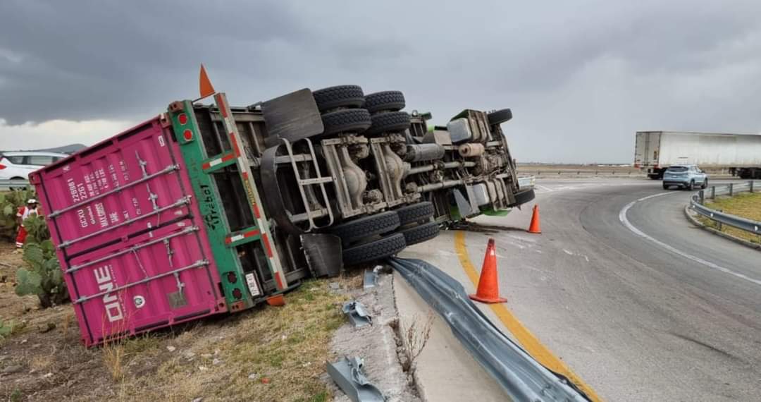 Al parecer, el vehículo salió de la autopista México-Querétaro y tomó la curva con gran velocidad, por lo que la caja se ladeó haciéndolo volcar. El operador, se informó, resultó lesionado de un brazo.