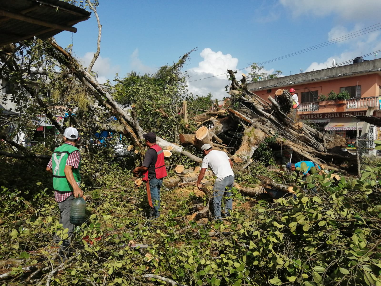 Hasta el momento, y derivado de las lluvias intensas que se han registrado, entre jueves y viernes de la presente semana se atendió la caída de dos árboles en la carretera Huejutla – Atlapexco, uno en la calle Cuauhtémoc, otro más en el acceso a la colonia Bernabé Cruz Flores, la pérdida de un techo de lámina de una vivienda en la comunidad de Candelaria y la caída de un árbol en la colonia Cantores.