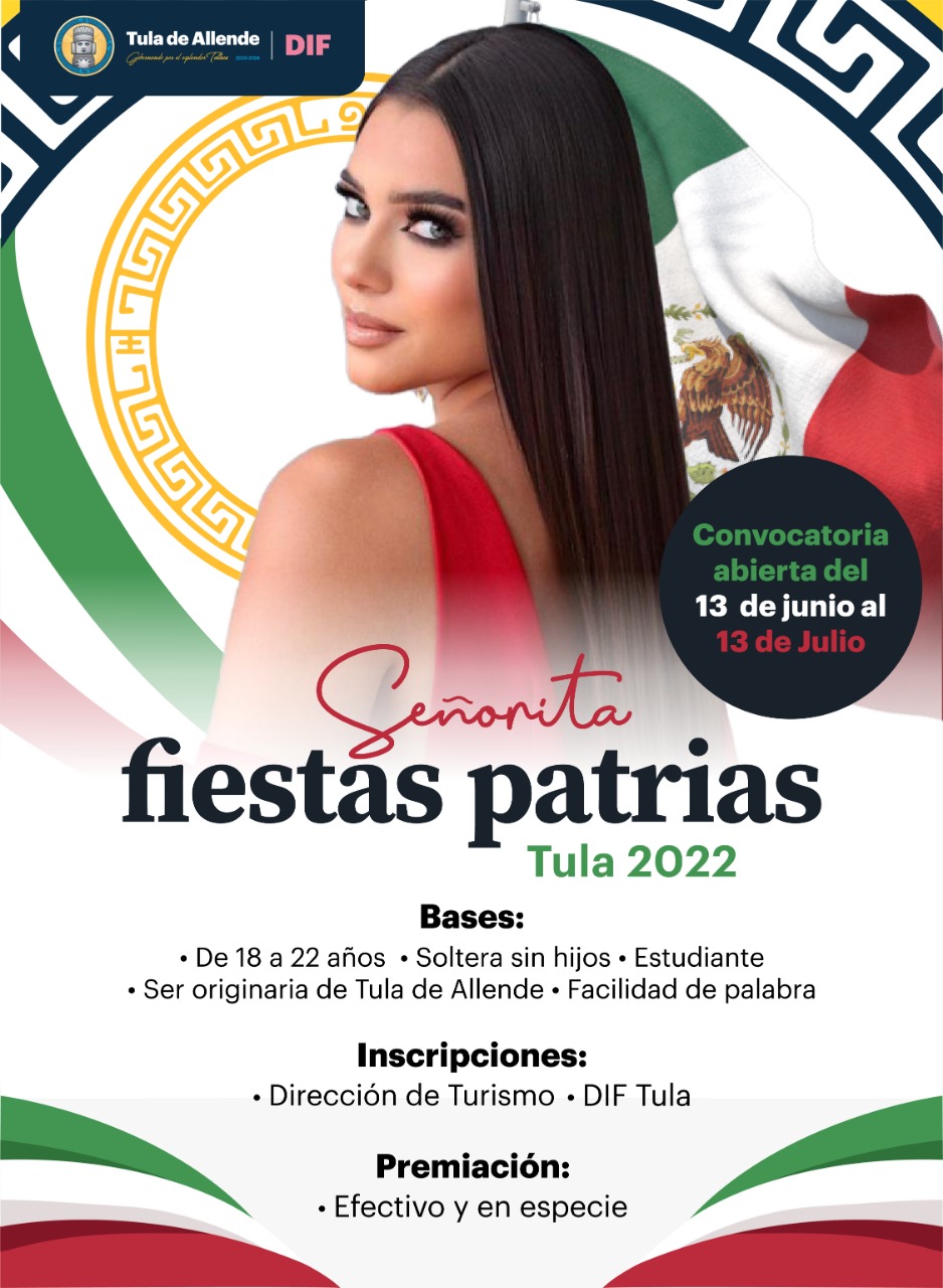 La presidencia municipal de Tula de Allende lanzó una convocatoria para quienes deseen participar en el certamen “Señorita Fiestas Patrias Tula 2022”.