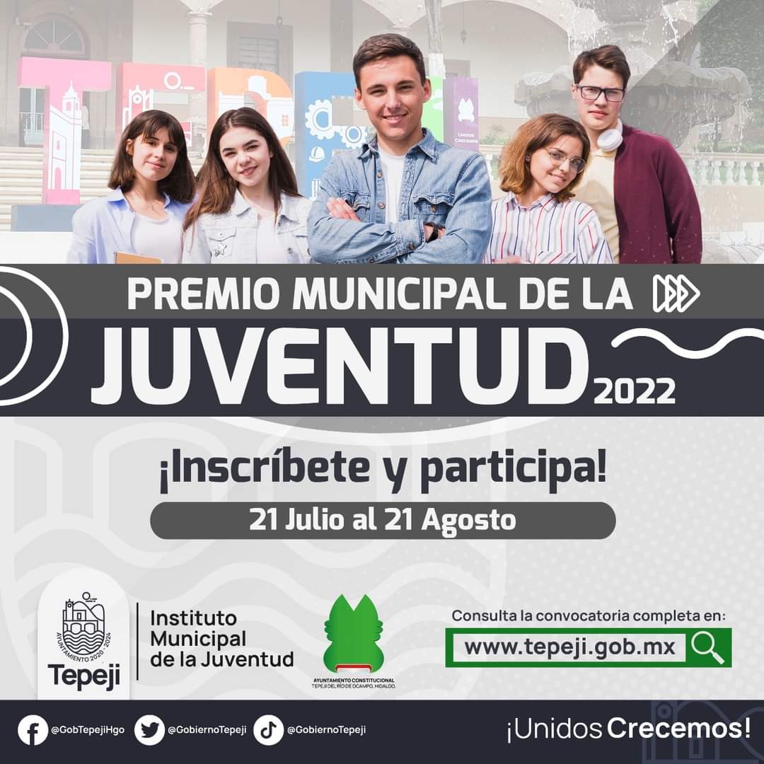 El gobierno y el Ayuntamiento de Tepeji del Río de Ocampo, están convocando a las y los jóvenes a participar en el Premio Municipal de la Juventud 2022. El galardón se instituyó para reconocer y estimular el desempeño, logros,