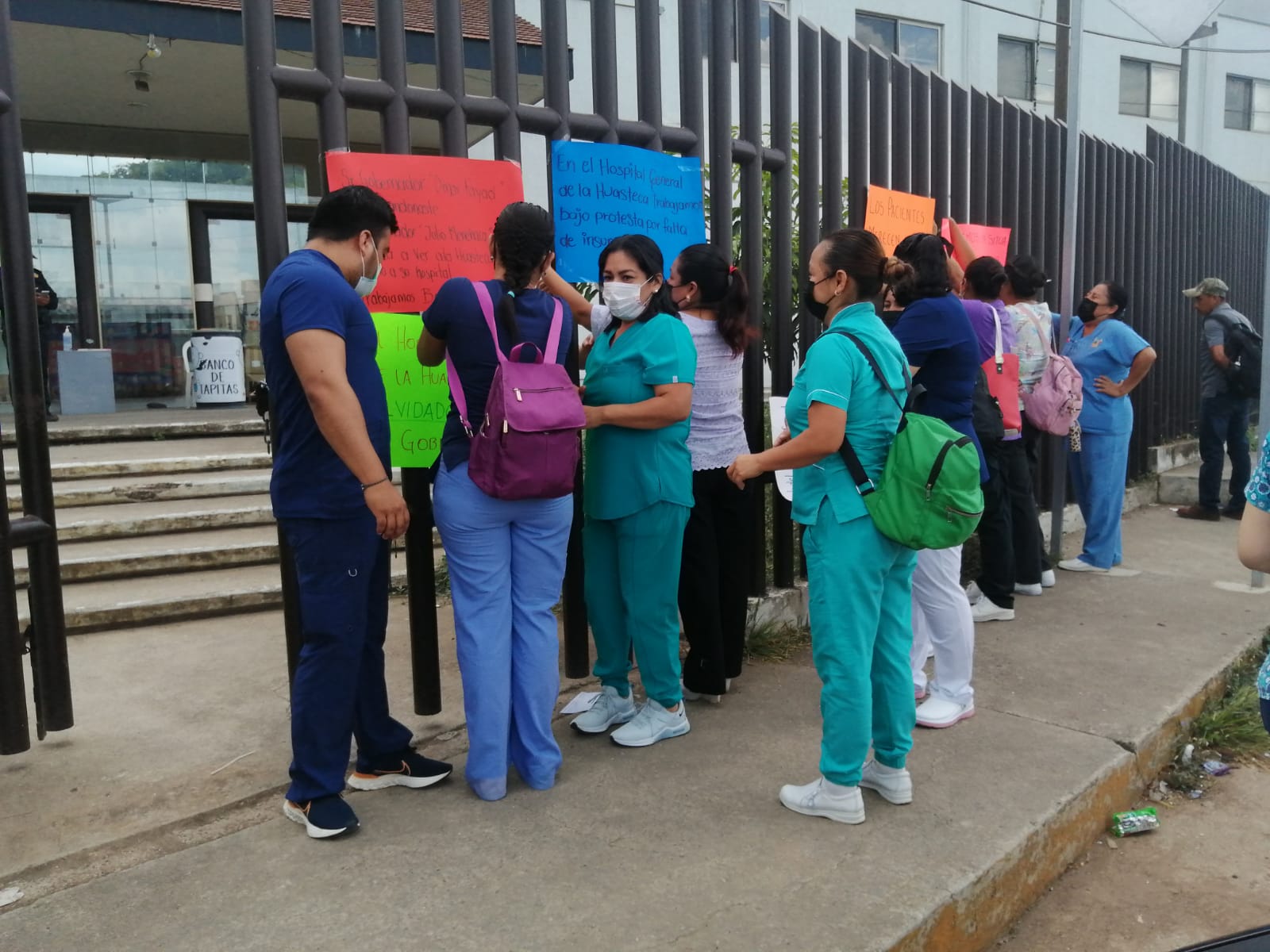 Fue la tarde de este jueves 1 de septiembre cuando protestaron con pancartas en las que dieron a conocer las condiciones en que laboran: sin aire acondicionado y sin los artículos que se requieren para atender a los pacientes que acuden a ese lugar con la esperanza de recuperar su salud.