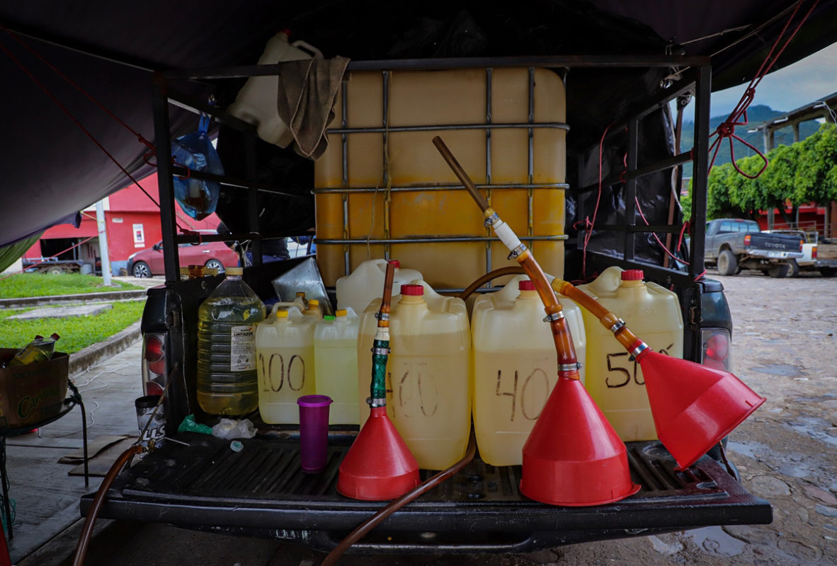 Al realizar una revisión de vehículo, los uniformados detectaron dentro cuatro contenedores con capacidad de mil litros cada uno, abastecidos al 90 por ciento de su capacidad, lo que representa aproximadamente 3 mil 600 litros de combustible, presumiblemente extraído de manera ilegal.