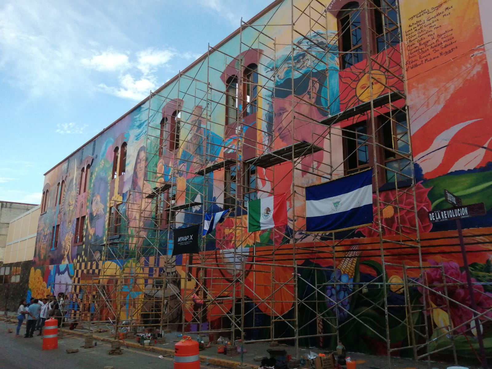 Edwin Rivera dio a conocer que en la creación de este mural participan artistas de México, El Salvador, Nicaragua y Argentina, además de informar que la enorme pintura se realiza dentro del decimotercer encuentro cultural del MIMAP. X en el que renuevan su dirigencia.