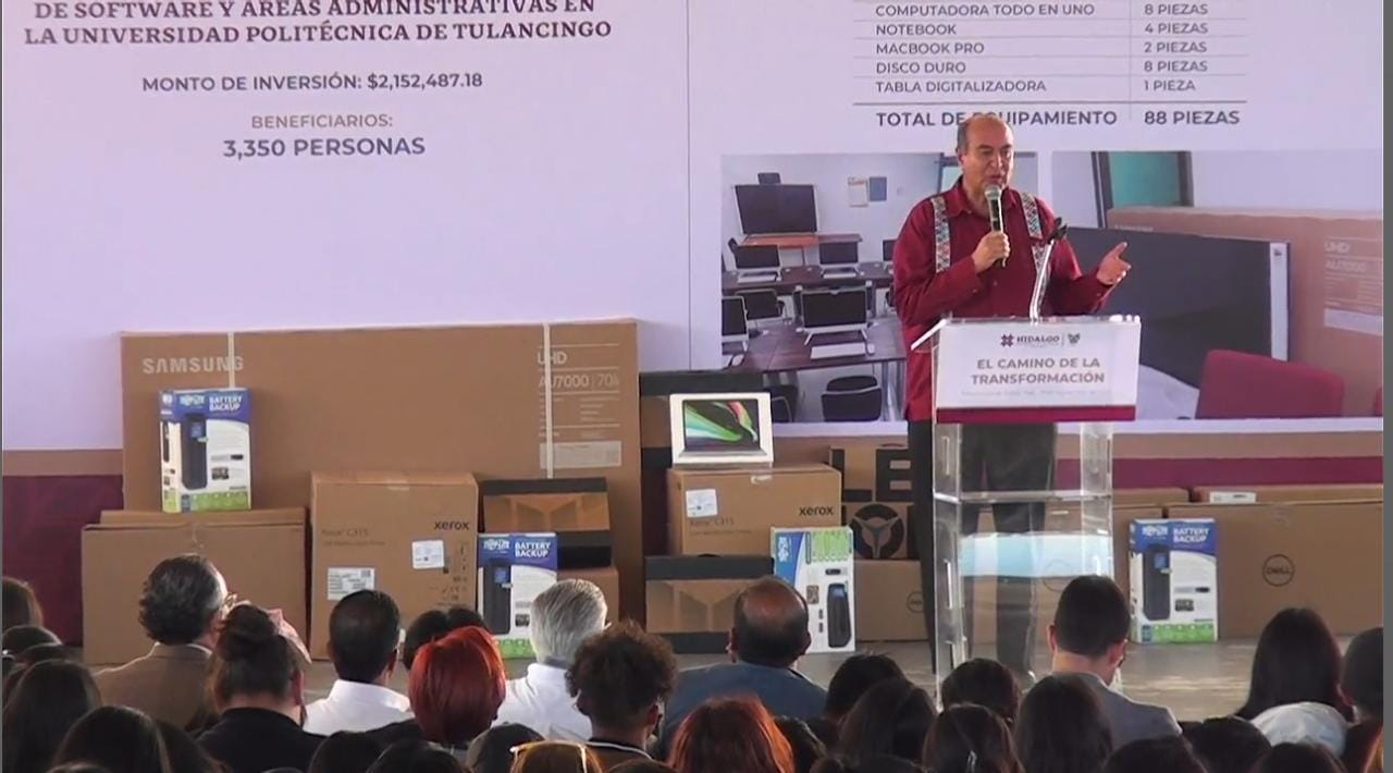 Esta tarde, el gobernador de Hidalgo, Julio Menchaca Salazar, acompañado del titular de la Secretaría de Educación Pública de Hidalgo (SEPH), Natividad Castrejón, hizo entrega de nuevo equipamiento especializado para el laboratorio de redes, fábrica, desarrollo de Software y área administrativa de la Universidad Politécnica de Tulancingo (UPT).