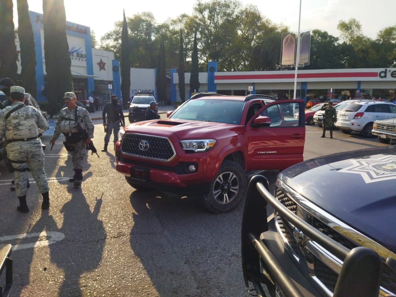 Posterior a ello, un grupo de aproximadamente 20 hombres, con vehículos compactos, particulares, cerraron los accesos al estacionamiento de la plaza comercial y atacaron de manera física y verbal a los uniformados.