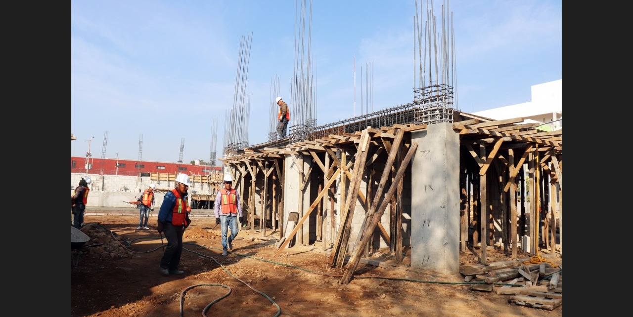 Finalmente, añadió que la meta de construcción es de 882.18 metros cuadrados, y actualmente se trabaja en la fabricación de estructura metálica de techumbre, el habilitado de acero en columnas y colado de las mismas, se construyen muros de block y colado de castillos, y ya fue realizado el colado de la losa de entrepiso en áreas de oficinas.