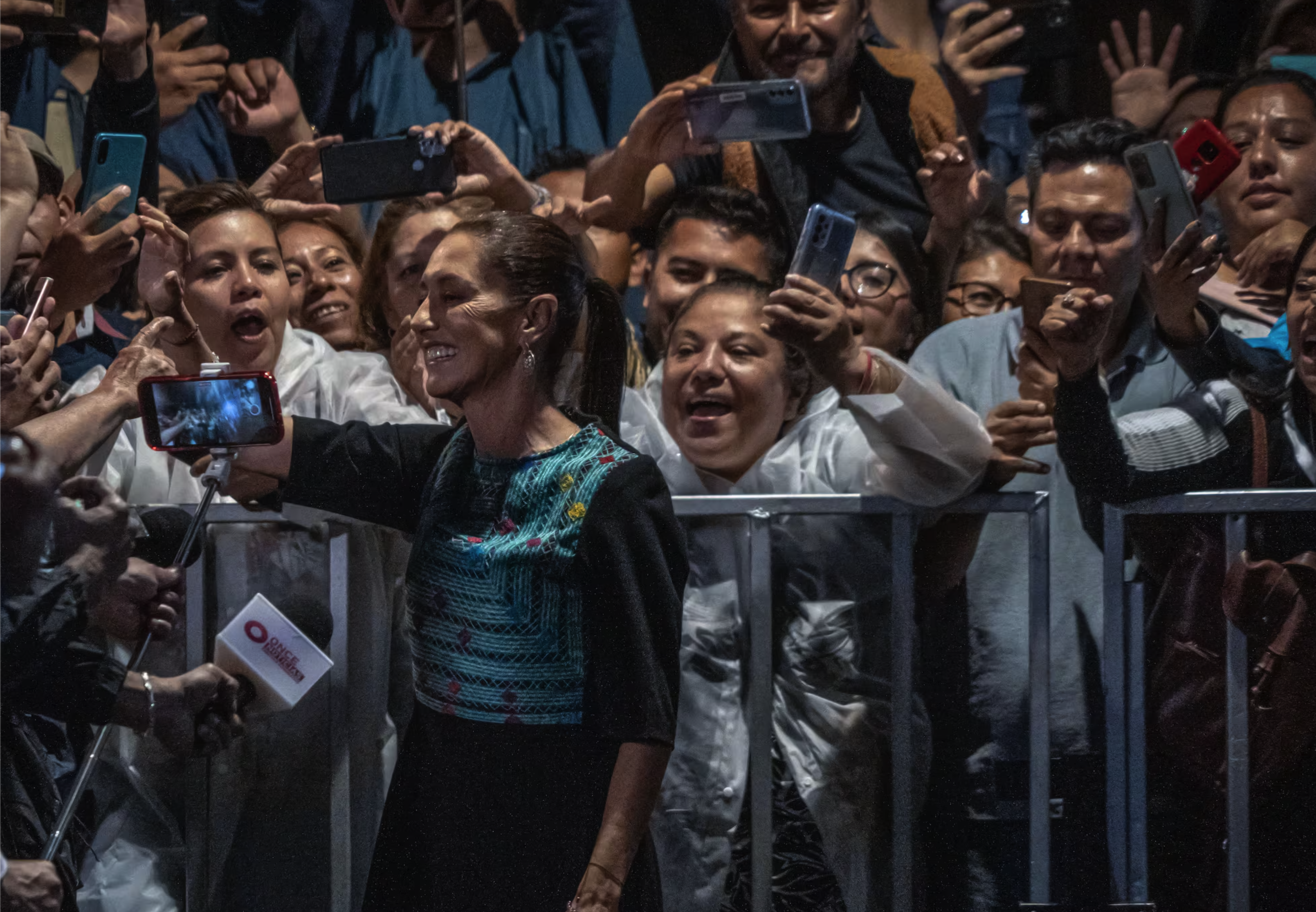 Al estilo del presidente AMLO, Claudia Sheinbaum celebró la victoria acompañada de sus simpatizantes que la esperaron congregados desde varias horas antes en el Zócalo de la Ciudad de México.